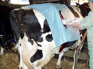北海道も今日はさわやかな一日です。1月28日に出産した母牛が、この2〜3日食欲がありません。獣医さんに往診していただいたところ、第四胃変位(私も詳しくは判りませんが、牛の4番目の胃が、お産により通常の位置からずれてしまい、うまく餌が消化されず胃の中にガスが溜まる病気)だとの事。早速手術をしていただき、1時間30分ほどで無事終了しました。牛さん、早く元気になって草をたくさんたべてください。そして今日の天気のようにスカッとしてください。