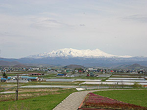 芝桜を観た後,用事があったので旭川へ行く途中,高速道路のパーキングエリアから大雪山連邦がはっきりと見えました。  もうすぐ6月になろうとしているのに,山全体が真っ白です。  本当に夏は来るのでしょうか?