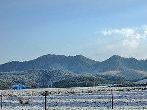 昨日の午後から気温が下がってきて、夕方にはみぞれが降ってきました。 朝、牛舎に出かけようと外をみると辺り一面銀世界です。 ”暑い””暑い”と言った夏が遠い日のように感じられます。 まだ牧場には18頭の若牛がいます。 雪の中で草は食べられるのか心配です。 でも、今月の25日には帰ってきます。 立派に成長した姿になって戻ってくるでしょう。 |